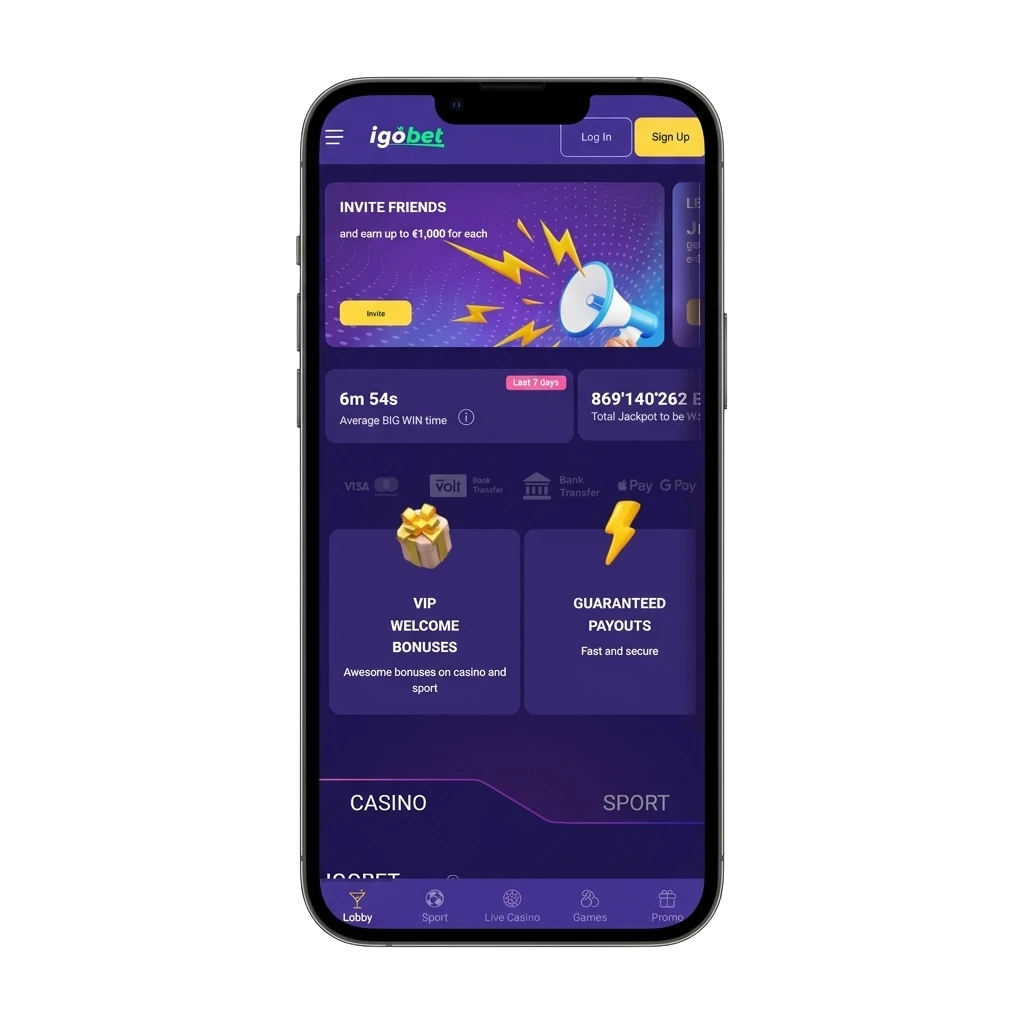 Tik op het Igobet-pictogram op je beginscherm. Log in met je bestaande account of maak direct een nieuw account aan. Je bent dan klaar om te weddenschappen of casinospellen te spelen.